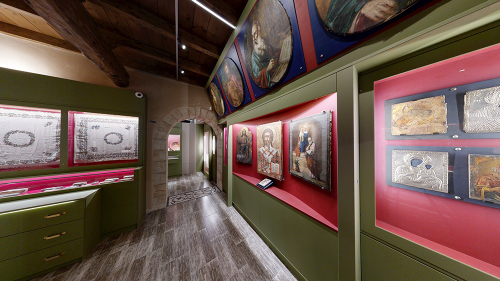 Μεταλλικά λειτουργικά αντικείμενα, εικόνες, χαρτώο υλικό και κεντήματα που ιστορούν τα σωτηριολογικά μηνύματα της εκκλησίας και τις αρχές του ορθόδοξου δόγματος, αντικατοπτρίζουν την ανθρώπινη ψυχή και την ανάγκη της προσφοράς ως ανταπόδοση σεβασμού και αγάπης στον Δημιουργό.